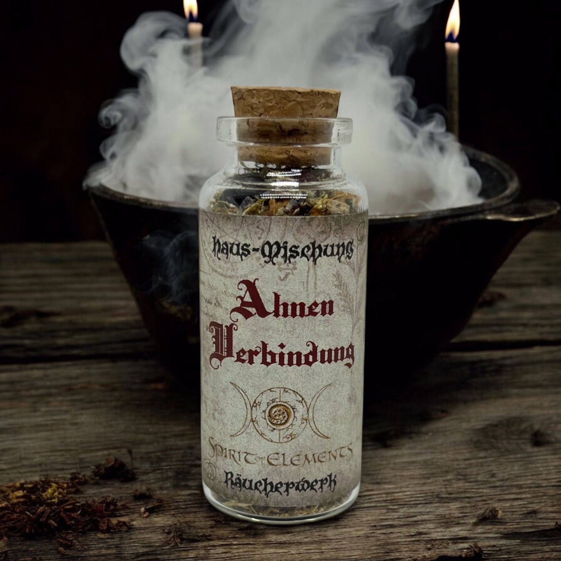 The handmade incense blend "Ancestor Connection" from Spirit of Elements opens access to the energies of your ancestors and supports you in rituals of honoring them and in spiritual communication. Its carefully selected herbs and resins create an atmosphere of protection, mindfulness, and inner peace.