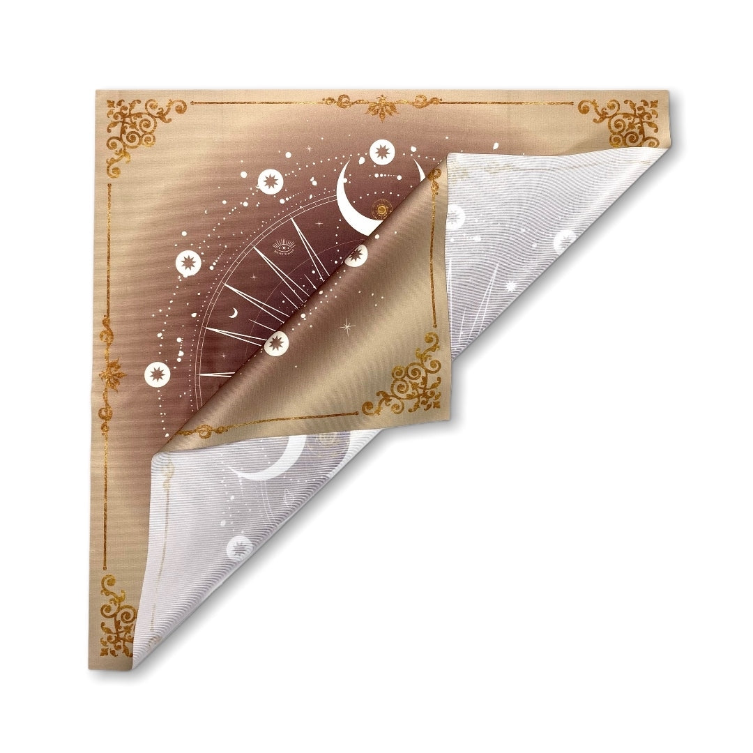 Practical and beautiful Lenormand and Tarot layout cloths with my unique logo of the three crescent moon framed in a Victorian frame.