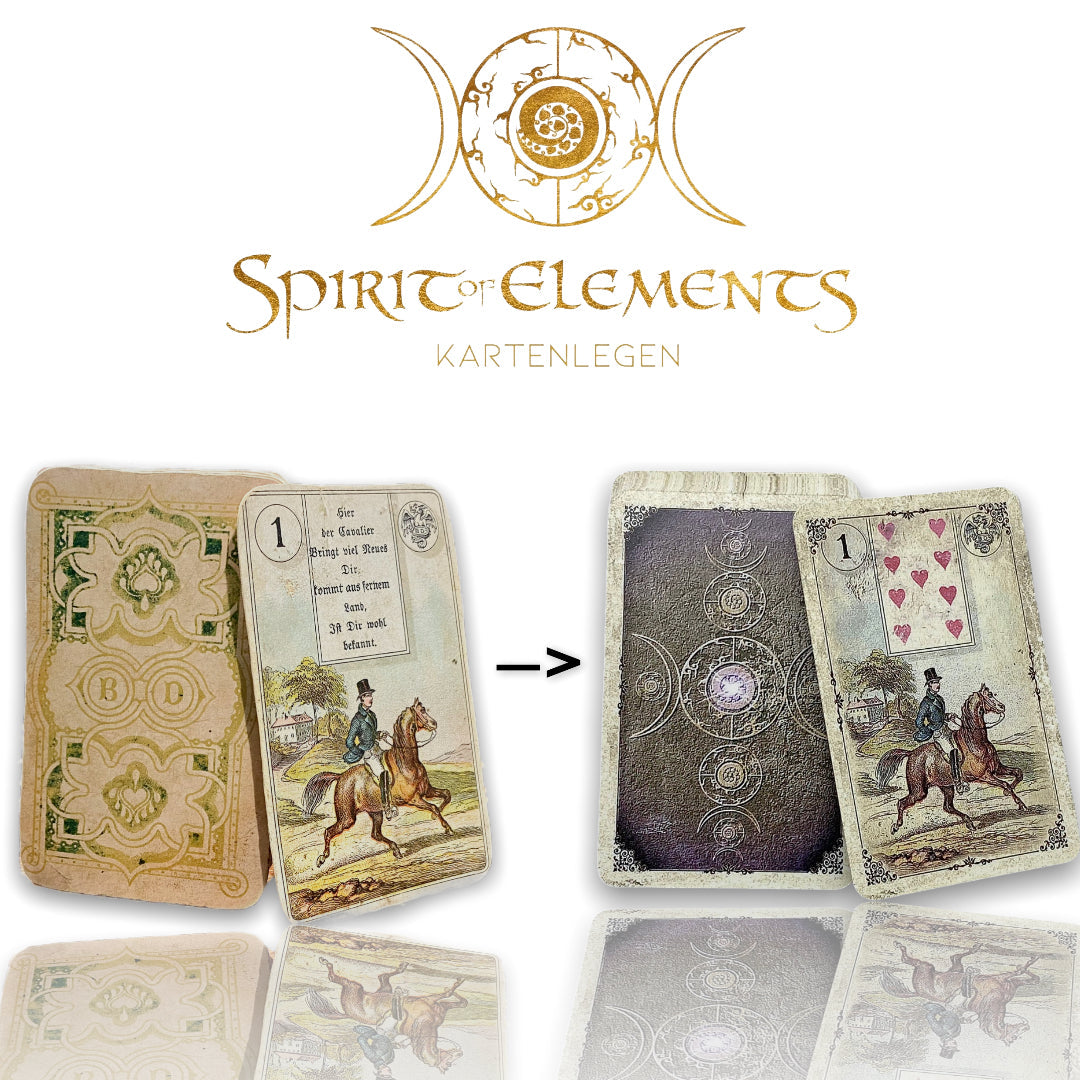 If required, a booklet with the card explanations (basic meanings of the Lenormand cards) can be ordered separately for this product.