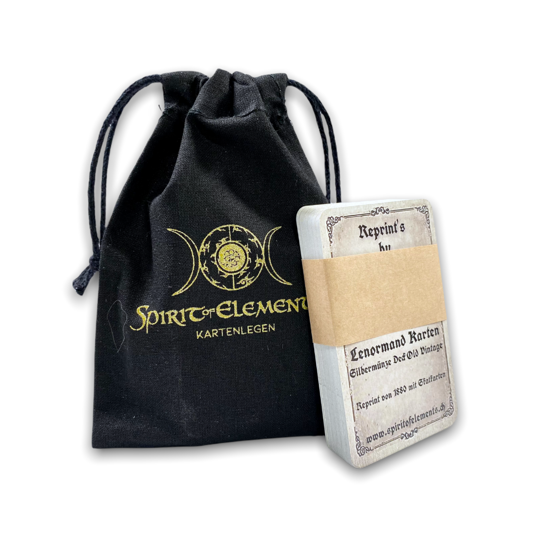 Packaging : The cards are banded with paper tape and come in a Spirit of Elements cotton drawstring bag.