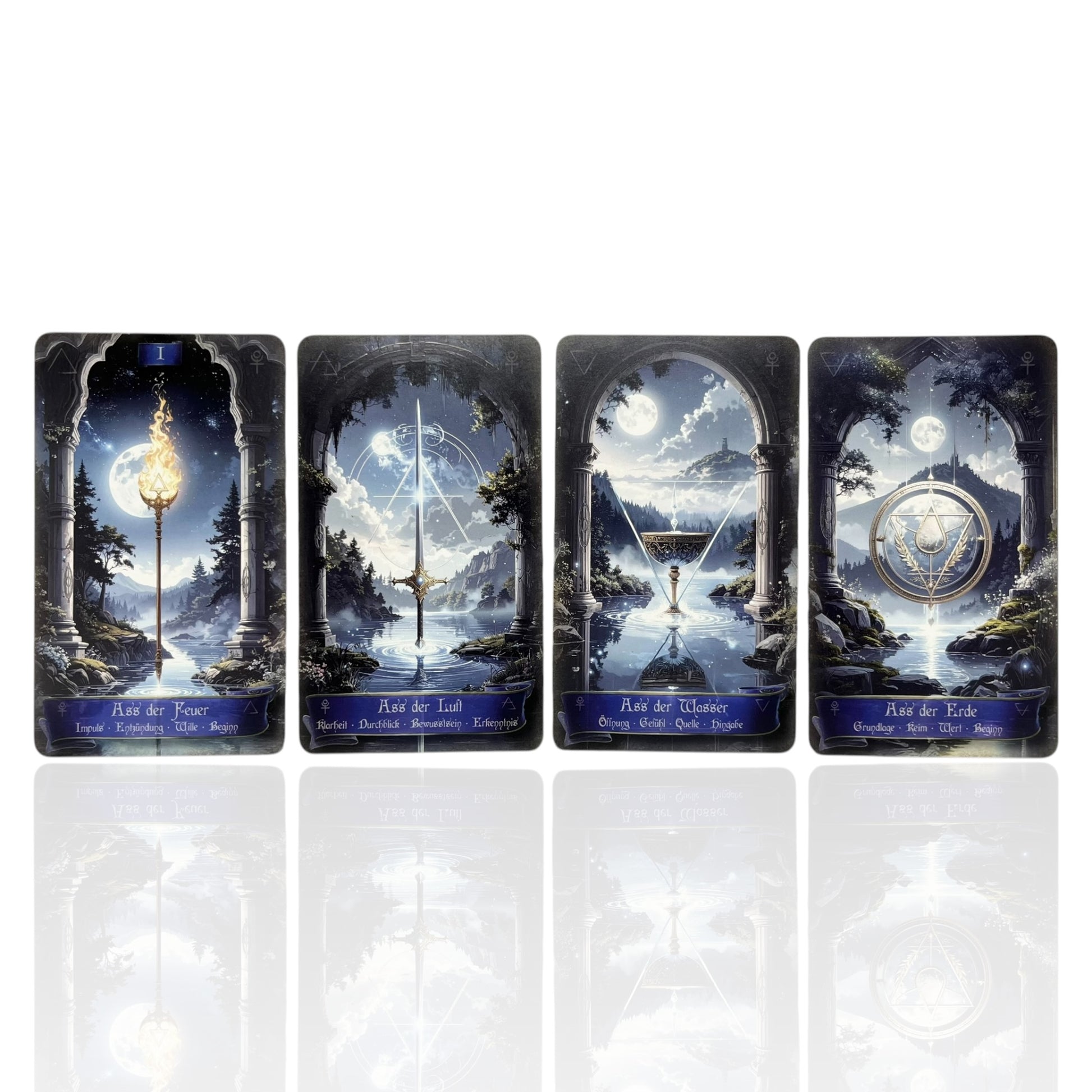 The Elements Symbolic Tarot – The Fountains of Avalon combines the classic structure of Tarot with its own symbolic imagery. Inspired by archetypal forms, elemental forces, and personal experiences, a deck emerged that not only wants to be read but experienced.